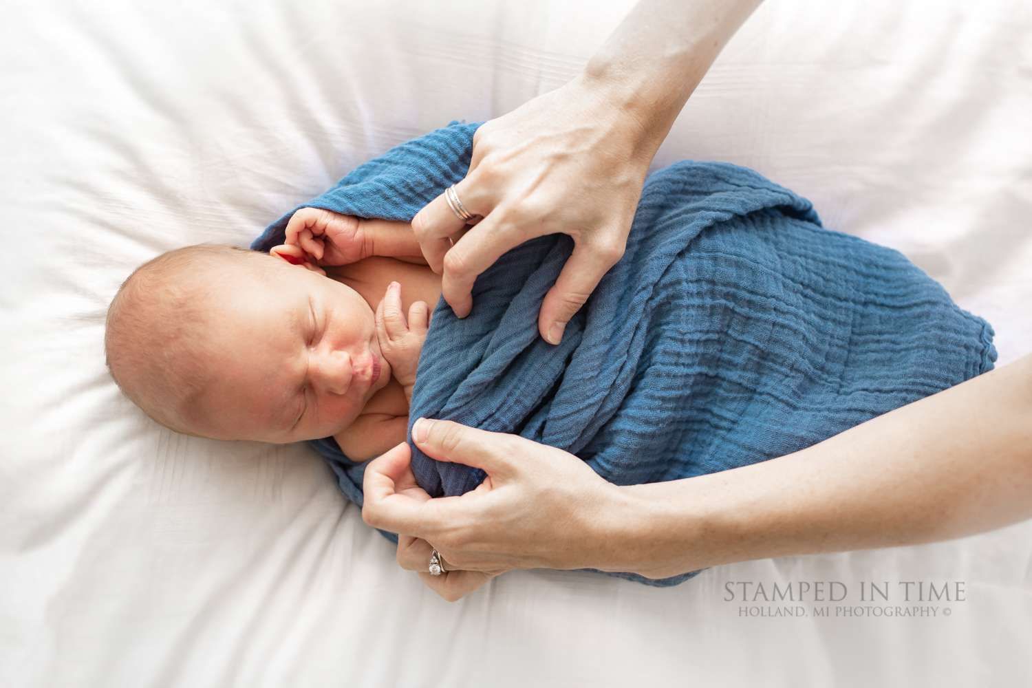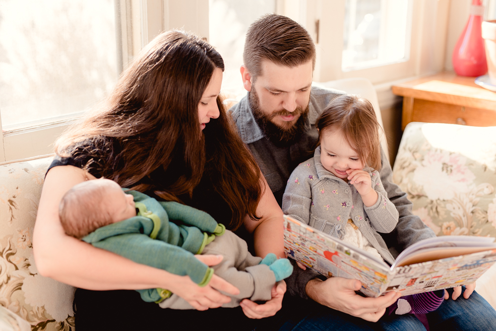 For newborn photography, I prefer to do lifestyle newborn photography with no props or heavy posing. Usually, this is done within your home. All I need is a room with a window and a full baby.
